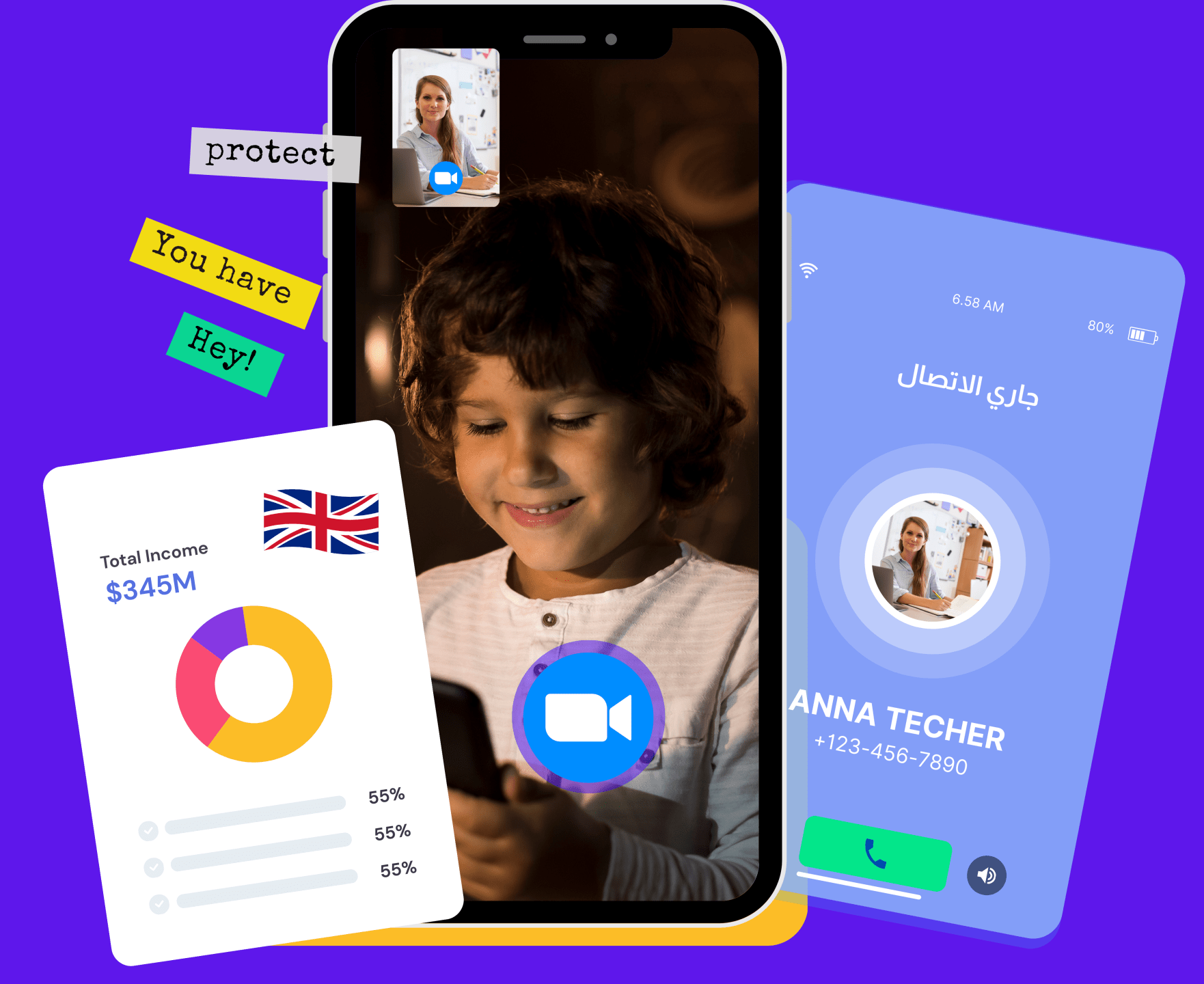"ابنك يتعلّم على يد أفضل المعلّمين المعتمدين من أهل اللغة لتعليم اللغة الإنجليزية للأطفال، وبأحدث المناهج المعتمدة عالميًّا."